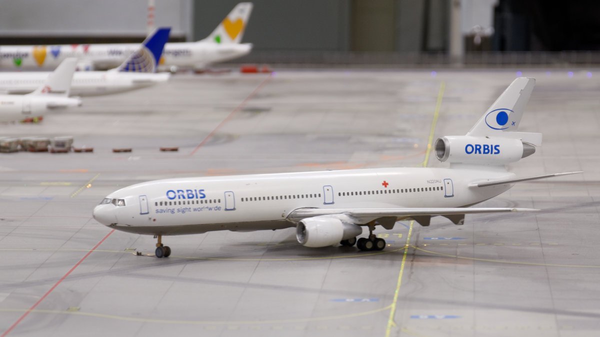 Am Airport sichte ich außer einer gerade mit vereinten Kräften zurückgeschobenen A340 der SriLankan Airlines...die rollende ORBIS-Augenklink in einer DC 10......sowie einen Beluga-Airbus, der gerade gefüttert wurde:In Knuffingen gibt es nun nicht nur elektrisch angetriebene Feuer-wer-Fahrzeuge, die genauso zuverlässig wie die Verbrenner den Schlossbrand auf Schloss Löwenstein löschen...sondern auch Radfahrende, die - vorbildlich beleuchtet - Knufingens vorbildliches Radwegenetz nutzen.Zwar werden die mindestens 1,5m seitlicher Sicherheitsabstand beim Überholen der Radfahrenden nicht immer eingehalten, aber immerhin werden Rowdies nun noch häufiger geblitzt:Die Schräglage der hinteren Säule lässt vermuten, dass da schon mal jemand gegengefahren ist.