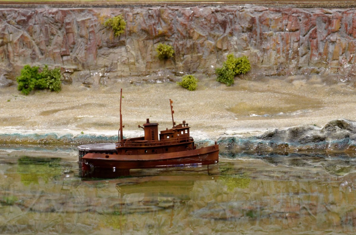 Der Schiffsverkehr ist ohne anwesende Mikromodellbauer etwas trist:Bunter geht es in den USA zu...... oder im Bistro, wo man - wie auch auf der Anlage - kurz vor Ostern das ein- oder andere Easter-Egg findet: