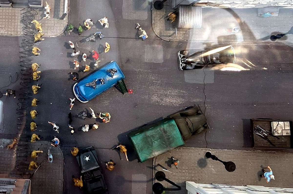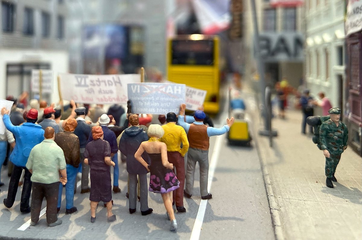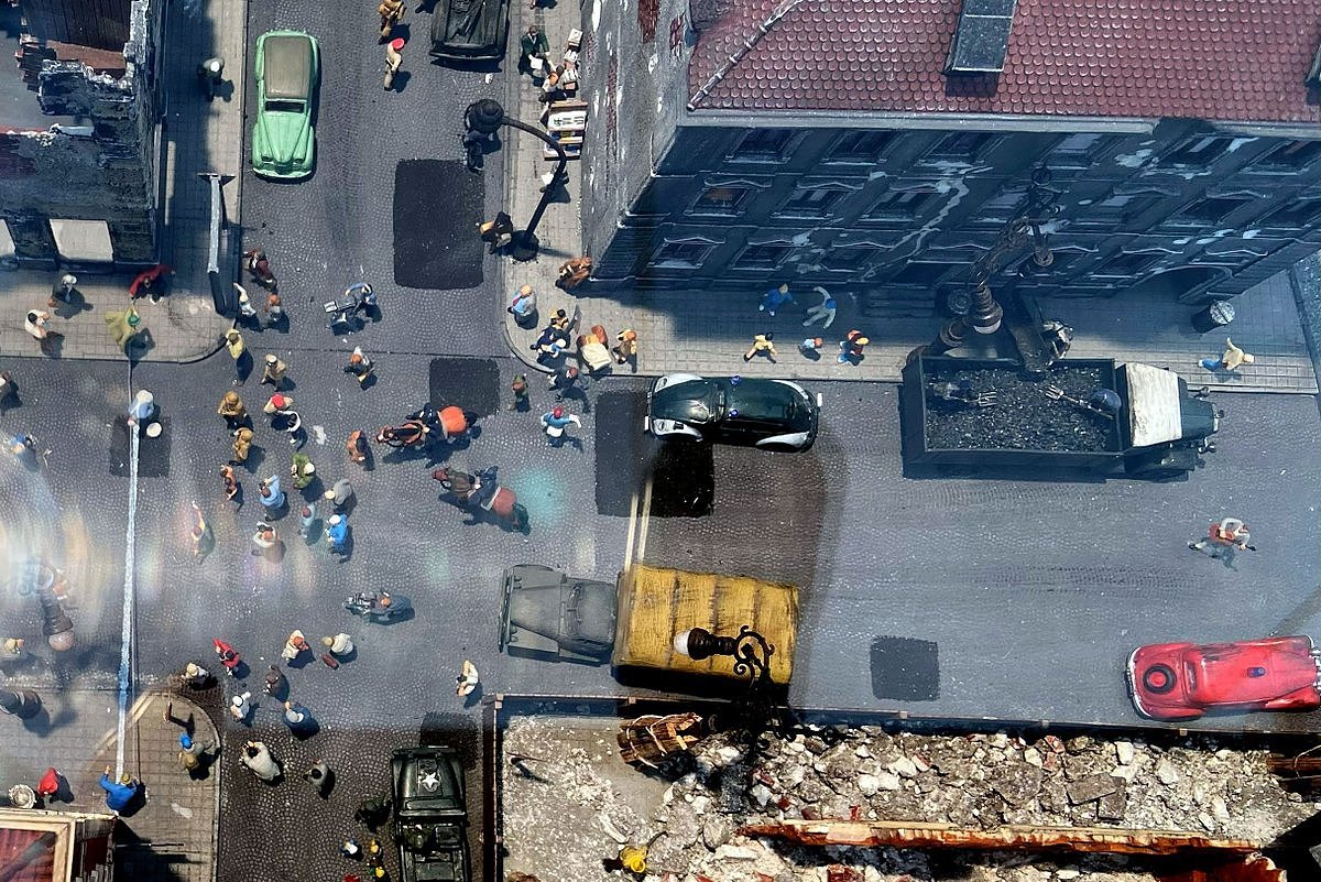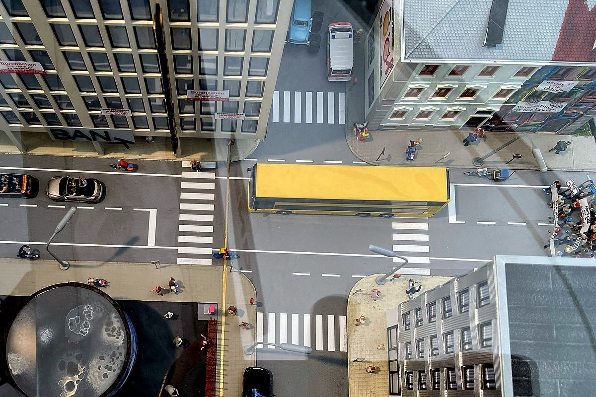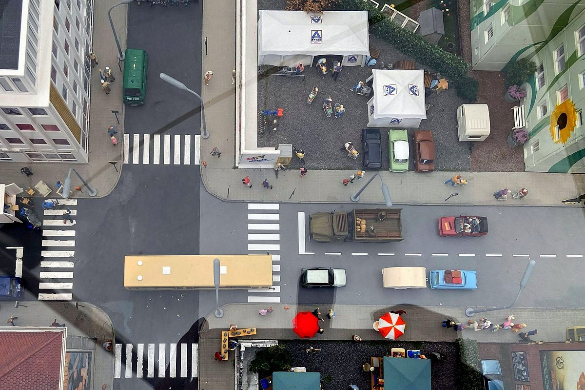 Irgendwie juckt es mich, jetzt ein Diorama für das Jahr 2030 zu wünschen. Das wäre doch mal eine interessante Aufgabe, die ebenfalls mit Hilfe wissenschaftlicher Unterstützung entstehen könnte. Später wäre ein Abgleich mit der Realität interessant. Zum Beispiel die beginnende Entmotorisierung der Kreuzung und Fahrradstraßen, Drohnentaxis ... und, und, und.