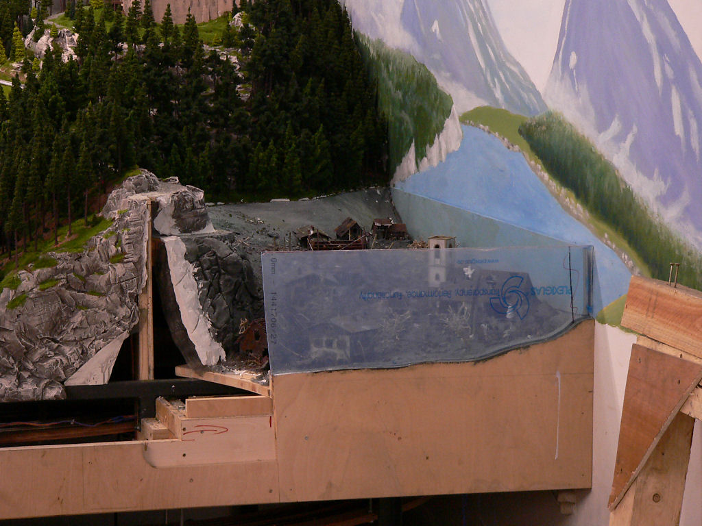 Hier sieht man gut, wie schön sich die Hintergrundbemalung in die Landschaft einfügt . . . . . Stausee mit "versenktem" Dorf