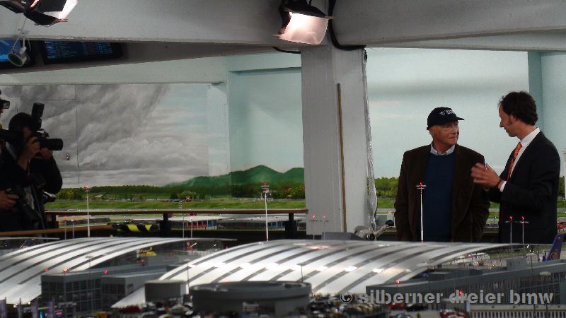 Endlich! Ein erster Blick auf den Flughafen: Der Ehrengast traf auch bald ein: Gerrit hat ihm selbstverständlich den Flughafen genauestens erklärt: Anschließend wurde ihm von Freddy und Gerrit ein Flugzeug seiner Airline NIKI überreicht. Nun aber zum eigentlichen Event. Gemeinsam wurde der Schubhelbel nach vorne geschoben und der Flughafen damit offiziell eröffnet.