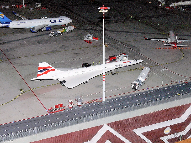 Eine Sache war leicht witzig weil die Air Berlin A-330 ohne Bugrad landete und dann von einem Mitarbeiter zur Reparatur mitgenommen werden mußte. Es wird repariert, erweitert, neu gebaut; da ist so ein nicht abgesenktes Näschen der Concorde noch das Geringste. Wenn man bedenkt das die Nase erst bei ca. 460 km/H. gerade gemacht wurde ist die gerade Nase im Stand sehr schlecht weil dann kein Pilot etwas sehen würde.