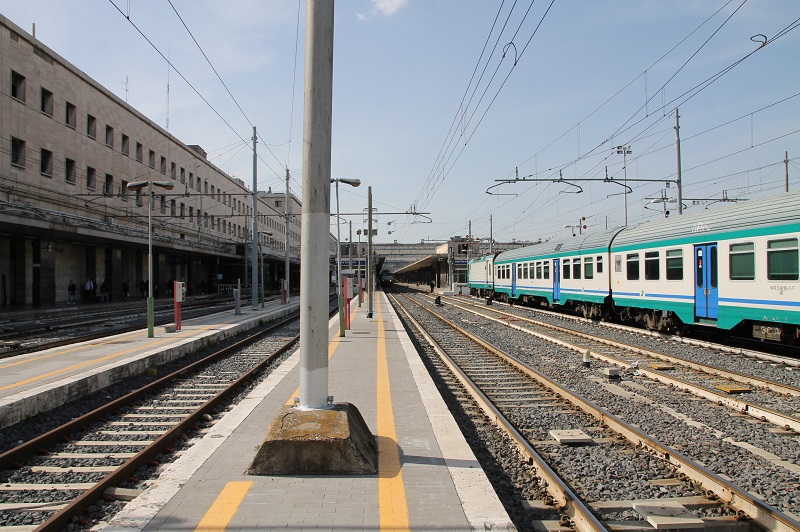 Bild 6: Haben die in Roma Termini wirklich so sauber durchgezogene, von der Blässe hunderttausendfacher Fußtritte in keinster Weise angekränkelte, gelbe Linien an den Bahnsteigkanten? Oder sind die Originale doch nicht eher verwischt/verschrammt/verblichen?