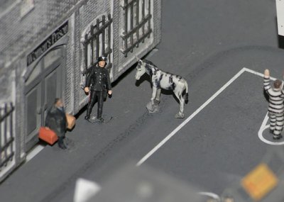 Das kleine Demorama (Demonstrations-Diorama) am untern Bildrand ist eine Arbeit von Gerhard Dauscher aus der Serie "Gerd the Builder", Folge 4. DORT waren allerdings im Original zwei Oldtimer zu sehen, nicht so ein neumodernes Stromlinien-Dingens. (am besten das Video bei 4:51 anhalten!)