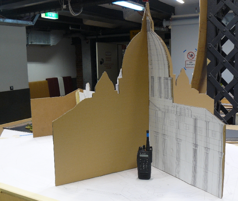 Was im Bella-Italia-Streifen zu kurz kam, war die Stadt Rom. Erst wenn man wirklich davor steht, erfährt man die ganze Größe der geplanten Bauwerke. Hier sehen wir das Pappmodell von St. Peter, zu Größenvergleich hat Maik mal sein Walkie-Talkie daneben gestellt.Einen Schritt weiter finden wir die Kaiserthermen.Ich bedaure jetzt schon, dass man nicht immer so nahe herankommen können wird, um die wundervollen, filigranen Details zu würdigen. +++ wird fortgesetzt +++