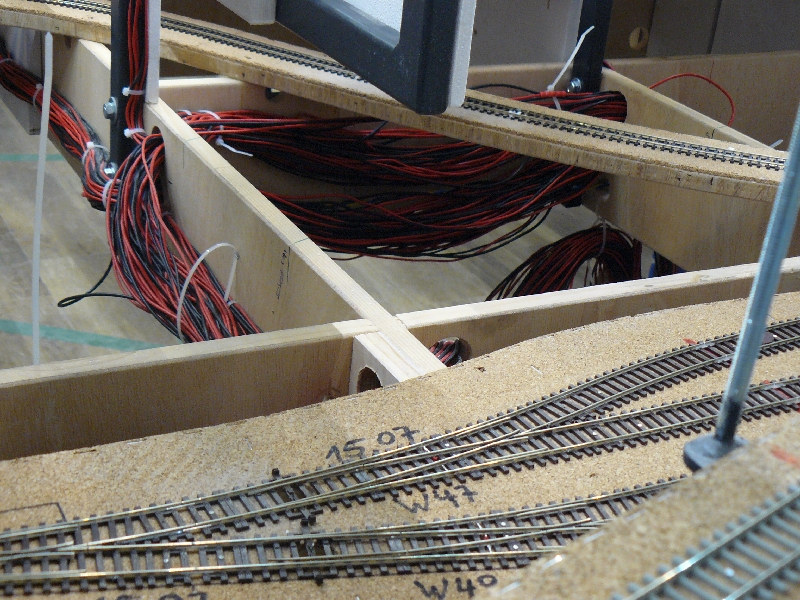 die 2,4 Kilometer Neubaustrecke sind, wie nicht anders zu erwarten, in höchster Detailtreue und Präzision gestaltet. Die Betonschwelle ist übrigens in Italien so beliebt, weil die Termiten sie nicht mögen. Sagt Maik. Vor den Weltrekord haben die Götter jedoch den Schweiß gesetzt. 15,4 km Schienen verdrahten sich nicht von selbst. An einigen Stellen der Italienbaustelle lässt der Baufortschritt noch einen Blick in die Unterwelt zu: ARMDICKE Kabelstränge winden sich durchs Unterholz.Hoffen wir mal, dass diese unter strengeren Sicherheitsrichtlinien verarbeitet wurden, als sie den folgenden beiden Herren geläufig sind. +++ Fortsetzung folgt (eine noch) +++