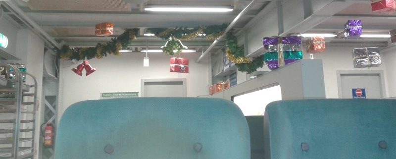 Wie im WB 788 ja bereits anklang: "Hilfe, es weihnachtet sehr!"* Das Bistro wurde reichlich mit Geschenken, Glocken und Girlanden geschmückt. Dass allerdings die Currywurst mit weihnachtlichen Aromen aufwarten würde - kann ich nur dementieren.