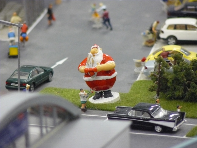 In den Rockies zieht wieder "Santa Train" seine Kreise... ...und andernorts machen sich die Weihnachtsmänner breit. Wenn auch nicht alle so breit wie dieses Exemplar. Irgendwo meine ich aufgeschnappt zu haben, dass es insgesamt 600 kleine Santas im Wunderland geben soll. Also machte ich mich auf die Suche. Da ist schon wieder einer: im Knuffinger Skatepark. Man findet sie wirklich an jeder Ecke. Äh, auch die Weihnachtsfrauen. Oder "Santa Claudia"?!" Sind die in den 600 schon inklusive oder rechnen die extra? Einige Santas sind gar in der Luft unterwegs, wie hier im Tiefflug über den Dächern von Knuffingen. Beachten Sie die vorschriftsmäßige Anti-Kollisions-Beleuchtung. Allerdings das Landen und Bremsen kann auf schwierigem Untergrund noch zu Problemen führen.