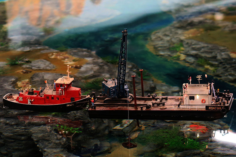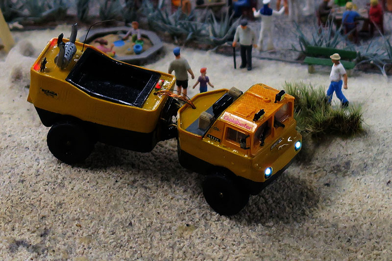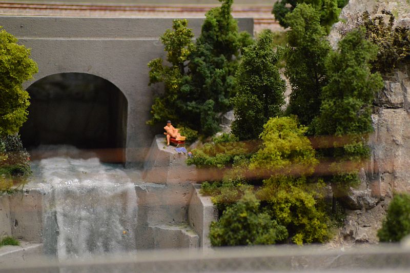 Die Absperrung zur Anlagenkante bestand meist aus Flatterband und die Knöpfe für die Knopfdruckaktionen waren nicht installiert, somit gab es die kleinen Gimiks auch nicht. Das war aber durch die beeindruckenden Landschaften, Gebäuden und Details gut zu verschmerzen. Es war ja auch eine Preview.
