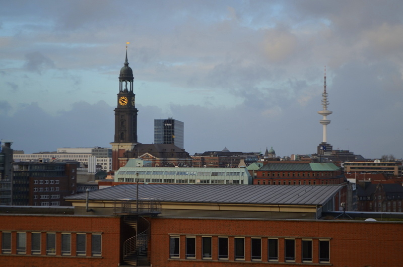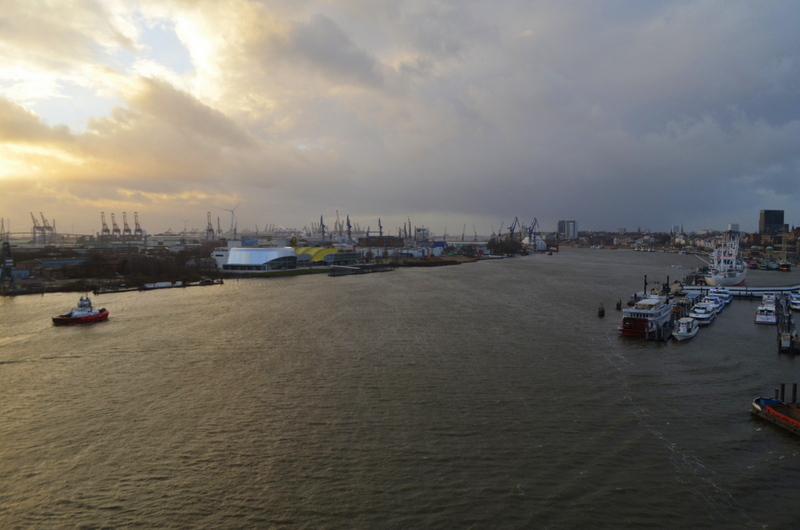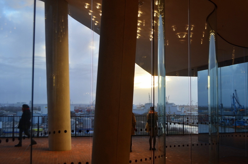 Seit November kann man bereits auf die Plaza auf dem Dach des Kaispeichers. Am zweiten Weihnachstag konnte ich von dort in 37 Metern Höhe erleben, wie es ist, wenn ein Sturm aufzieht. Soviel sei verraten, wenn die Böen sich auf die Spitze des Gebäudes stürzen, macht das Haus selbst ziemlich beeindruckende Musik.