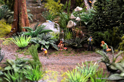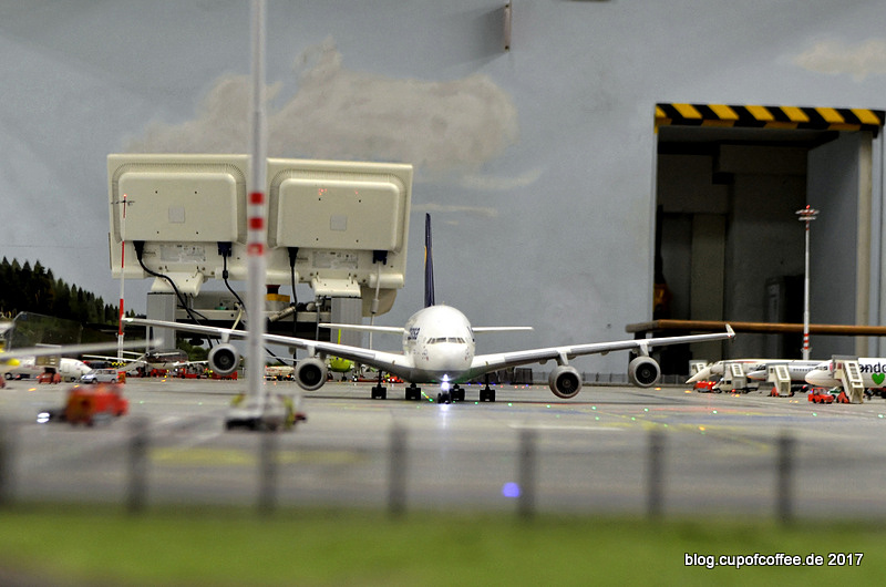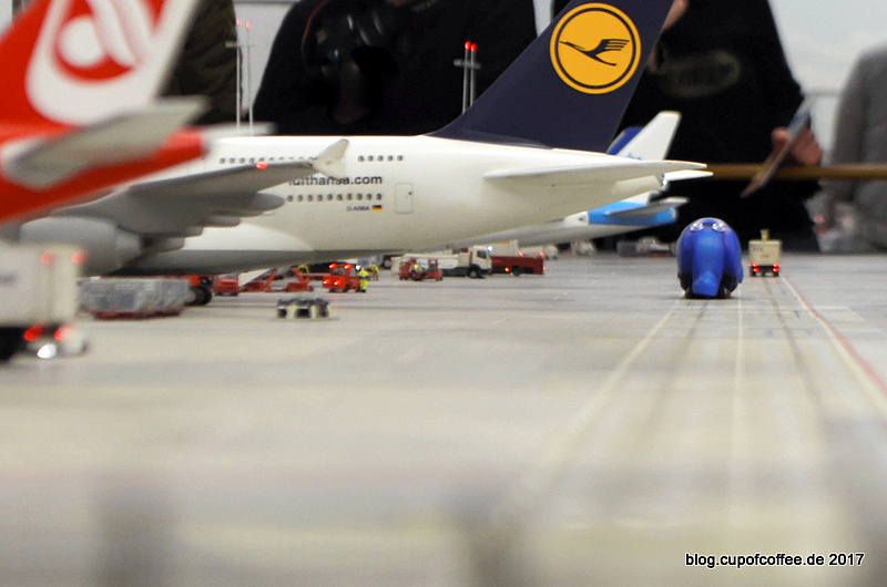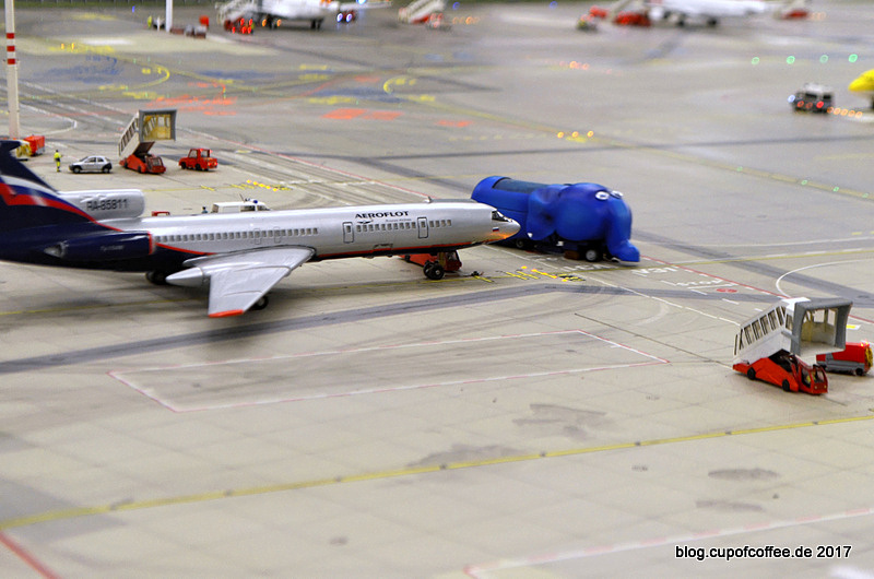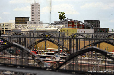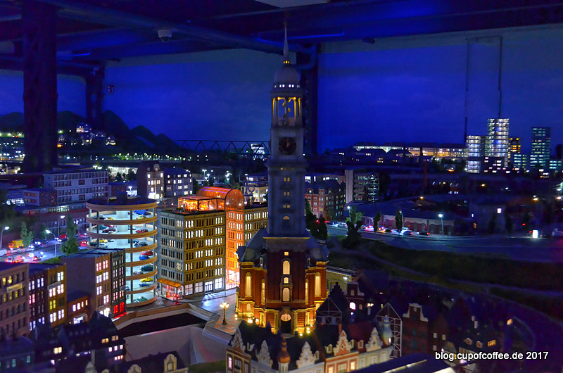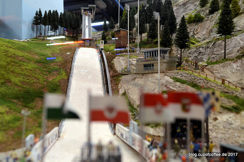 Im Modellbau kann ich ein paar venezianische Kleingebäude (?) im Regal hinten erkennen, beim Containerschiff denke ich, dass Leo neben der üblichen Werftarbeit auch dort die für die automatische Schiffssteuerung erforderlichen Dioden einbaut, und auf der neuen Skisprungschanze fehlt mir der kugelrunde hübsche Schneemann von früher. Aber alles sieht gut aus, und ich freue mich auf meinen nächsten Besuch im Mai in der Speicherstadt.