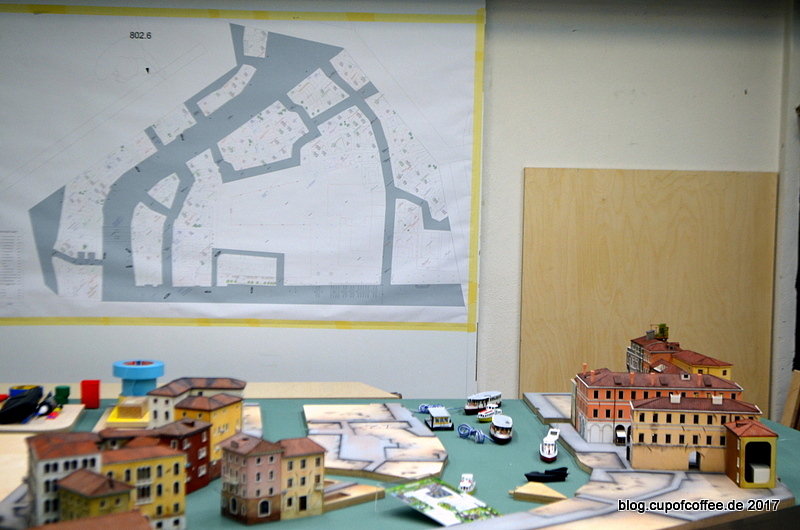 Das schaut schon recht toll aus. Die ersten Plätze sind gepflastert und ein paar Miniatur-Schiffchen harren der Verkabelung.