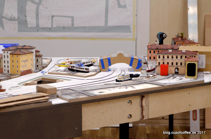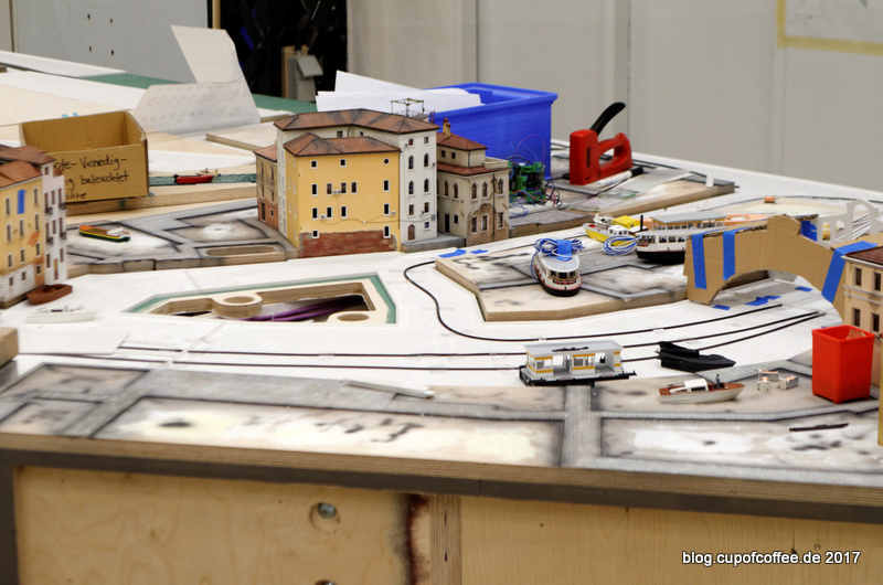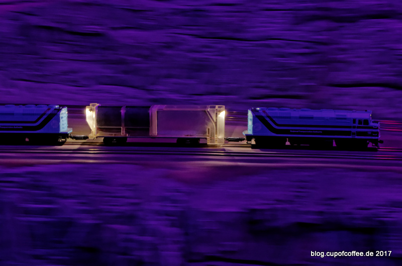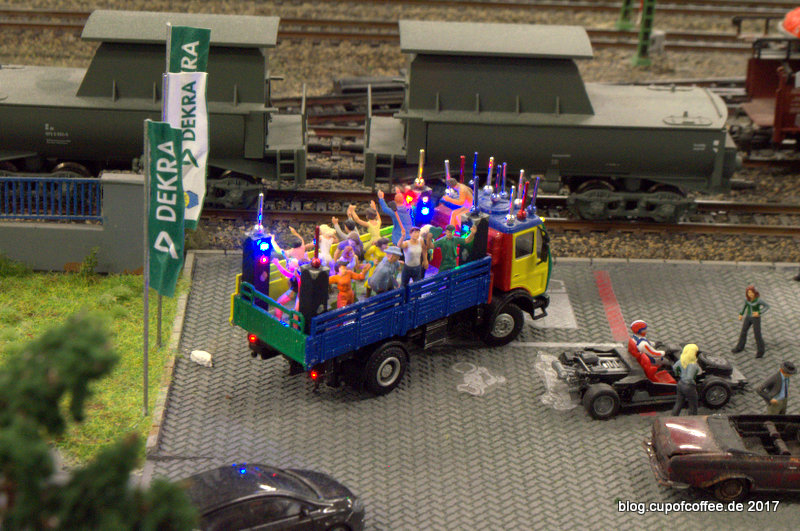 Die schwarzen Linien kennen wir schon von anderen Wunderland Baustellen... Dank Gerrits Tagebuch wissen wir seit heute, dass es sich um Fahrdrähte für Zahnbürsten handelt. Auch in anderen Abschnitten gibt es erstaunliches zu sehen, z.B. diesen Staubsauger im US-Abschnitt, der beim hoovern richtig Radau macht. Damit ist vermutlich auch die Frage nach dem Sonderfahrzeug aus WB 866 gelöst...