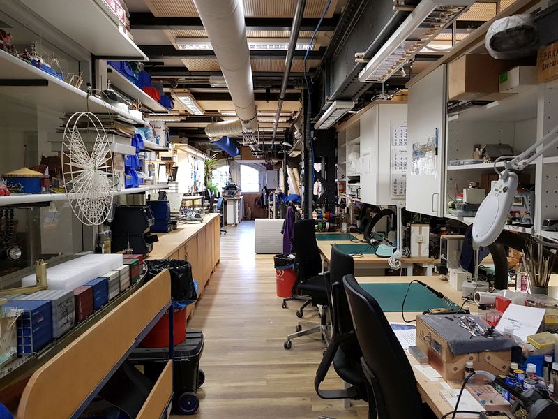 Natürlich nur an den Werktagen, am Sonntag um 15 Uhr herrscht im Modellbau wie immer gähnende Leere. Dies hat den großen Vorteil, dass man beim Fotografieren niemanden stört, andererseits den Nachteil, dass einem niemand erklärt, was man da so alles sehen kann. Daher brauche ich mal wieder Eure Hilfe...
