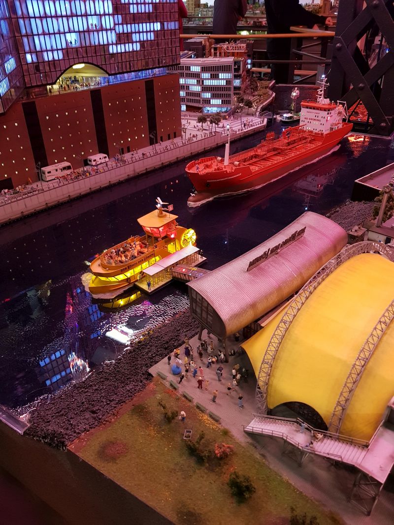 In der Hafencity ist der Modellbau zur Zeit dabei, den Anleger beim Musical vorbildgerecht tiefer zu legen, allerdings konnte ich weder den passenden Knopfdrücker noch die Sperrgebietstonnen finden.