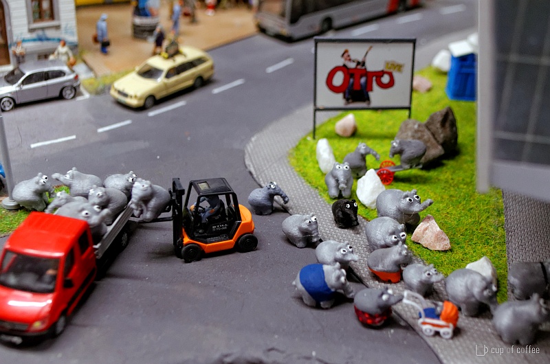Natürlich musste man mal beim kleinen Ottili vorbei schauen. Die Showbühne ist wirklich stark geworden. Draußen marodieren Ottifantenhorden. Hinterm Deich wurde renoviert und die THW-Szenen wurden anscheinend aufgehübscht doch wieder in Skandi: Beim herumzoomen mit dem Camcoder bin ich an dieser Szene hängen geblieben. Auch der MFM-Zug bekommt hin und wieder Wartung und Pflege Auf der Monaco-Baustelle liegen mysteriöse Platten sieht aus wie...
