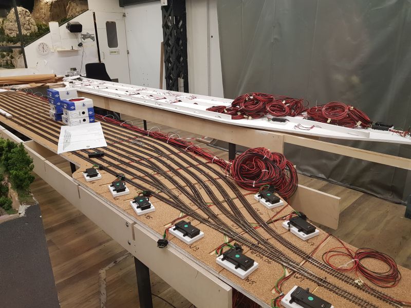 Während ich dies hier schrieb ist noch ein weiterer WB-Teil nachgerückt - ich hatte Wolfgangs neuesten Schattenbahnhof (Ebene minus-null-Komma-irgendwas) bereits im Mai bewundert. Er wird in den Boden eingelassen, daher wurden die Unterflur-Weichenantriebe hier auf der Oberseite montiert. Das sieht jetzt schon ziemlich fertig aus. Und zum Thema "Wir lieben Fliegen" habe ich auch mal ein Bild zur Hand: Dankeschön für Deine gute Arbeit