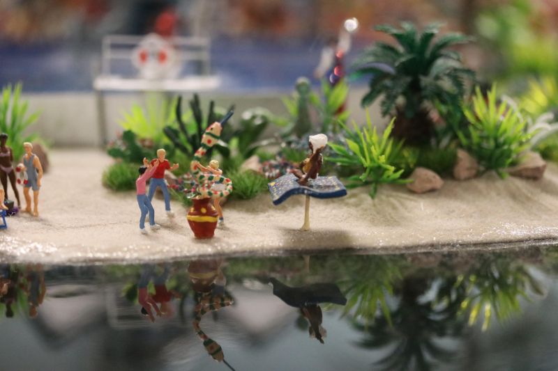 Der Bahnhof Las Vegas wurde von Teresa aufgehübscht, da können wir gespannt sein, wie die Bahnsteige des Transrapids in Zukunft glänzen werden. Gittas Strandzug ist auch wieder unterwegs. Bobbys neues Sealife ist mittlerweile auch fertig, die am Anfang noch etwas unschönen Ränder sind in gewohnter Qualität ausgeführt. Das KSC ist leider noch eine Baustelle, der Crawler und die neue Startrampe haben beide noch Lampenfieber und sind zur Behandlung bei den Elektronikern.
