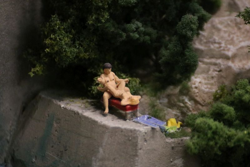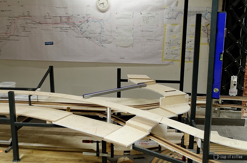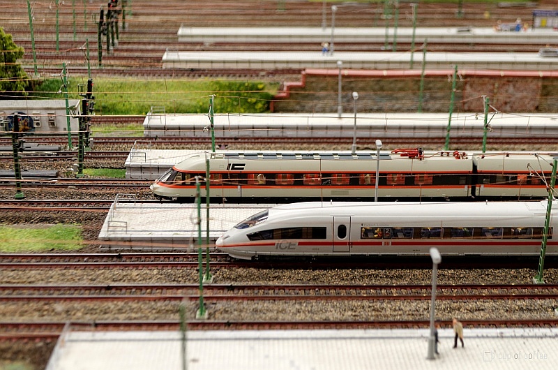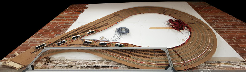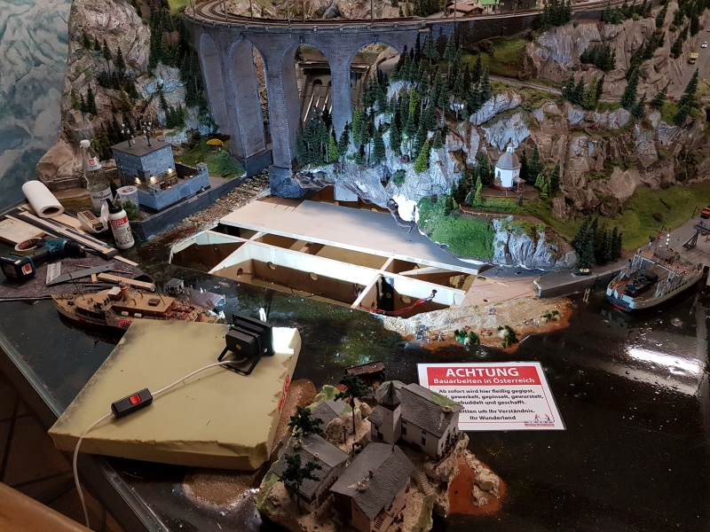 Zunächst einmal handelt es sich bei der Wandbahn um eine sehr gut gemachte optische Täuschung, ein Spiel mit Perspektive und Größenänderung. Normalerweise werden im Modellbau ja die entfernten Gegenstände verkleinert dargestellt, um optische Tiefe vorzutäuschen. Hier wurde der Effekt gegenteilig angewendet. Im Hintergrund wurden breitere Schienen der Größe 0 verlegt, außerdem wurde der Schienenabstand erheblich vergrößert, die normalerweise parallel verlaufenden Fugen durch entsprechende Backsteine verzerrt. Toll gemachter Effekt, aber doch nur ein Effekt.günni hat geschrieben:Moin,