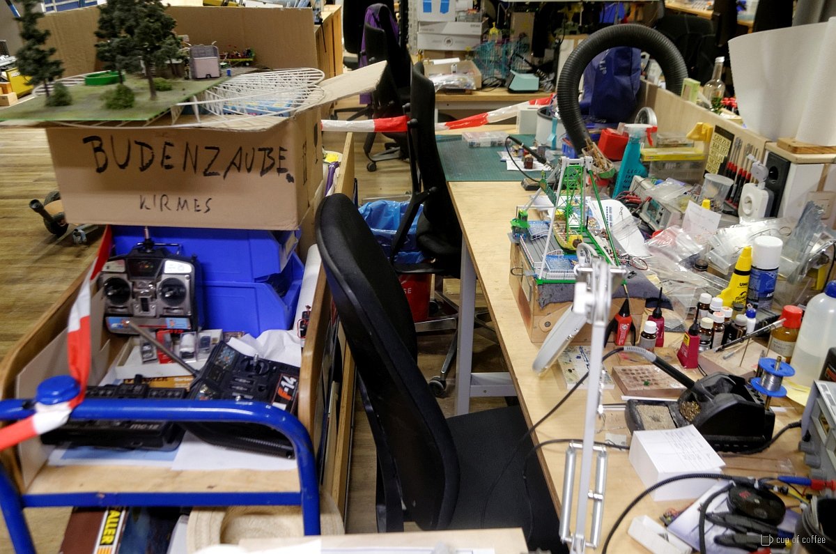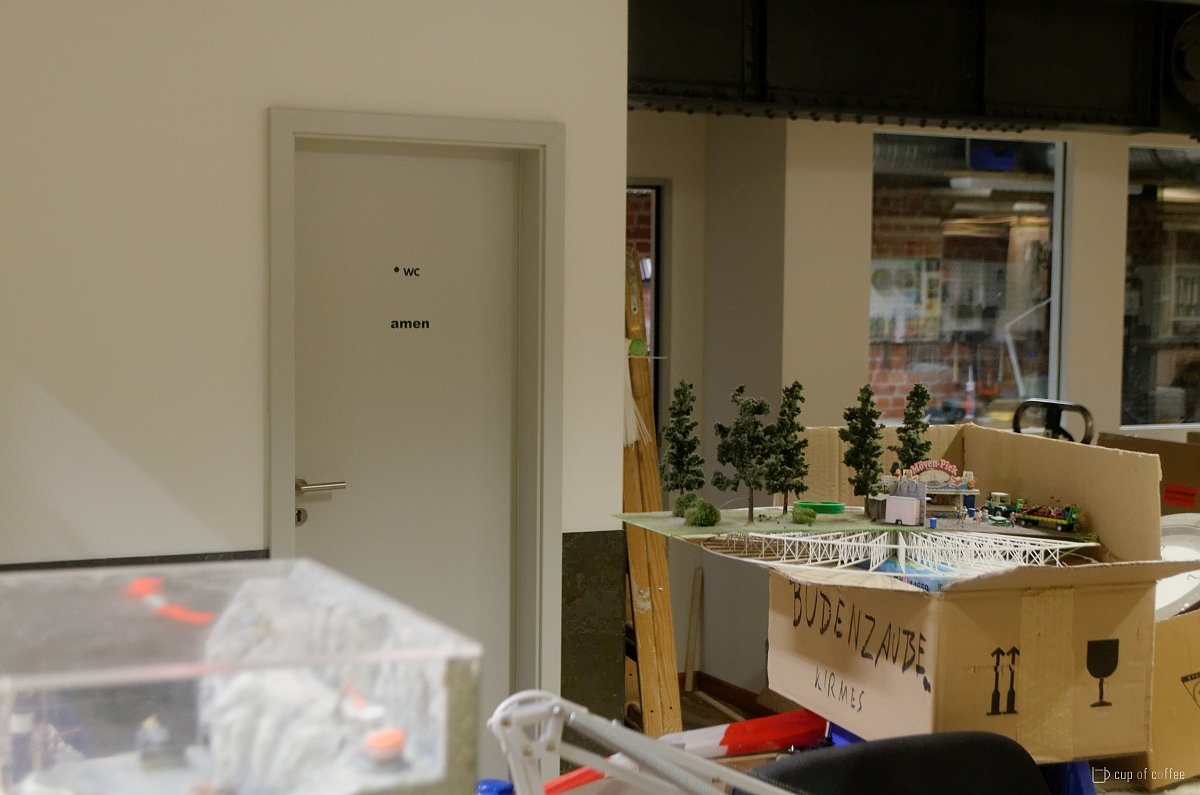Auf dem Rückweg zum Schließfach machten wir noch dieses erschütternde Bild von Leos Arbeitsplatz.