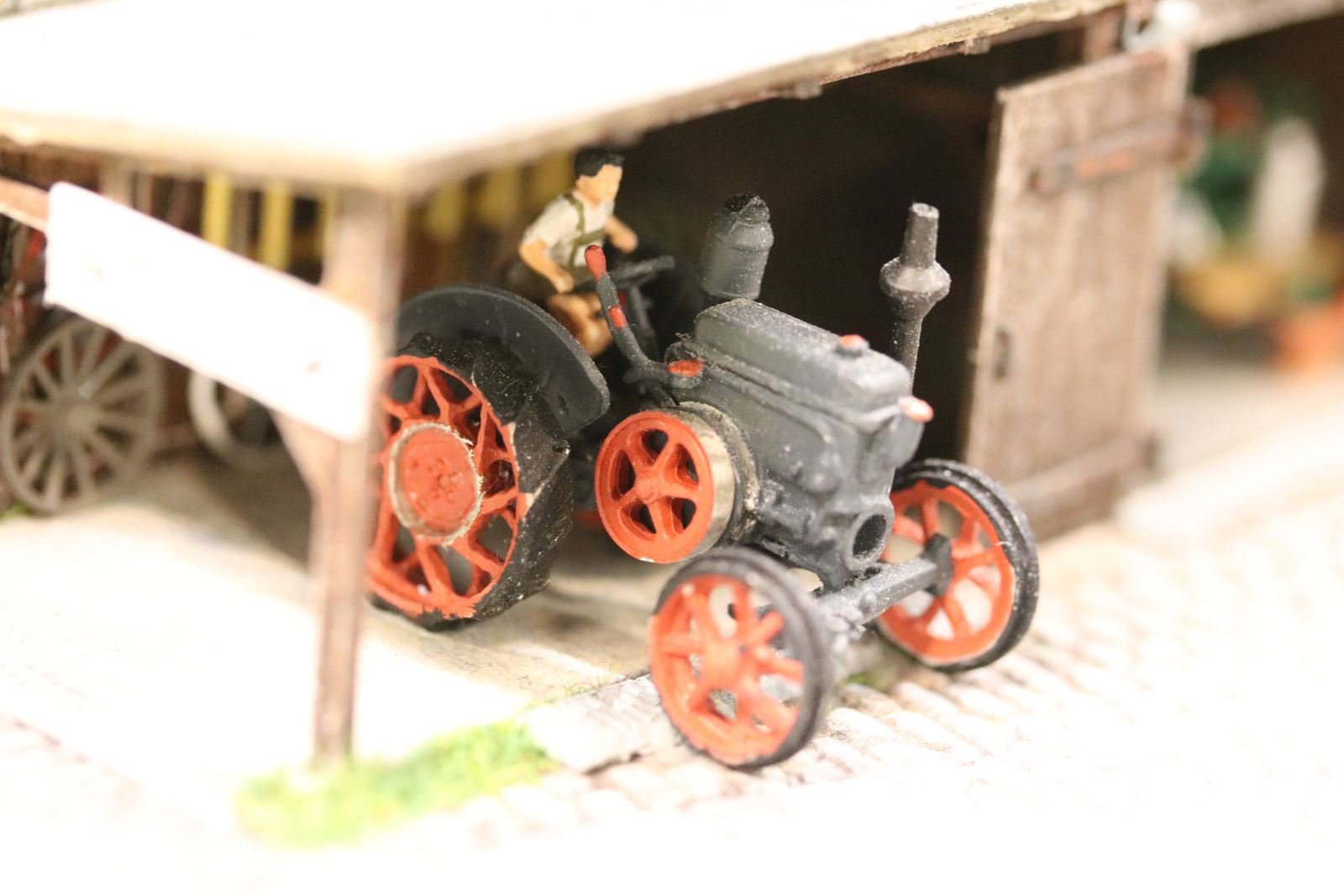 Zahlreiche Handwerker arbeiten in kleinen Schuppen und Scheunen. .