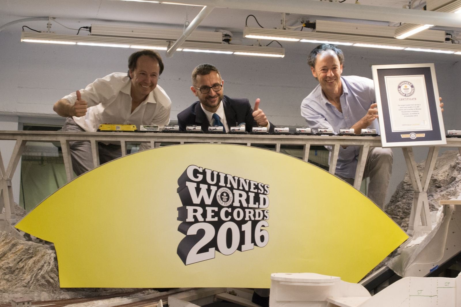 Es geht ja nur um die Länge der verlegten, nutzbaren und miteinander verbundenen Schienen. Bei der Eröffnung Italiens war es ja ähnlich, da wurde zur Guinness-Pressekonferenz mal eben die Brücke am Marmorsteinbruch eingesetzt und, schwups, gab es am 10. September 2015 einen neuen Weltrekord.