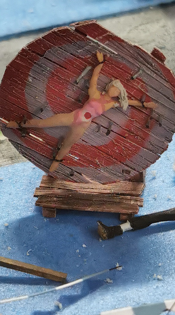 Die Assistentin des Messerwerfers hat aber eine böse Bauchwunde.