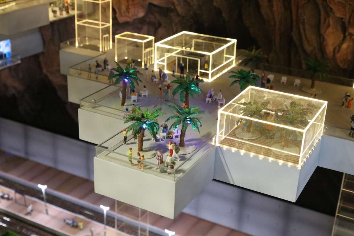 Bei dem Terminal handelt es sich um eine Mischung aus Porta Alpina, der Elbphilharmonie und dem Flughafenparkhaus. Es ist ein unterirdischer Bahnhof, den die Fahrgäste mit Aufzügen erreichen (Porta Alpina), es gibt unglaublich viel liebevoll und detailreich ausgestattete Räume (Elphi) und neben der Zufahrt große unterirdische Parkflächen für Autos, LKW und Fuhrwerke.