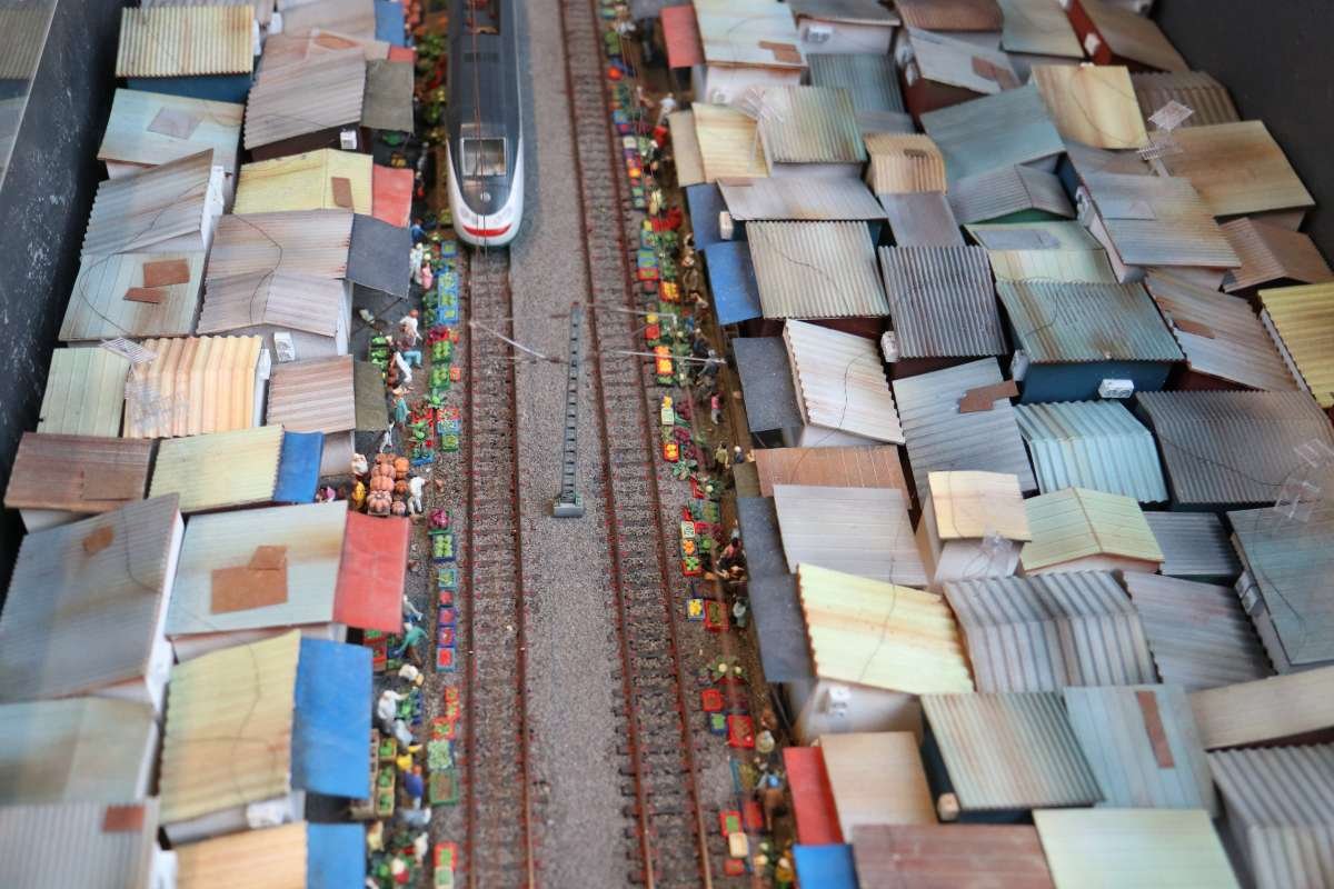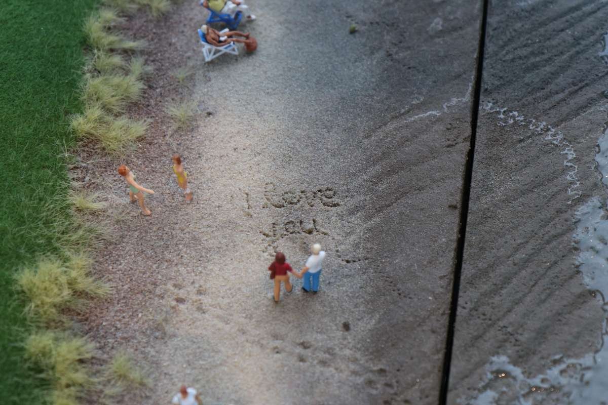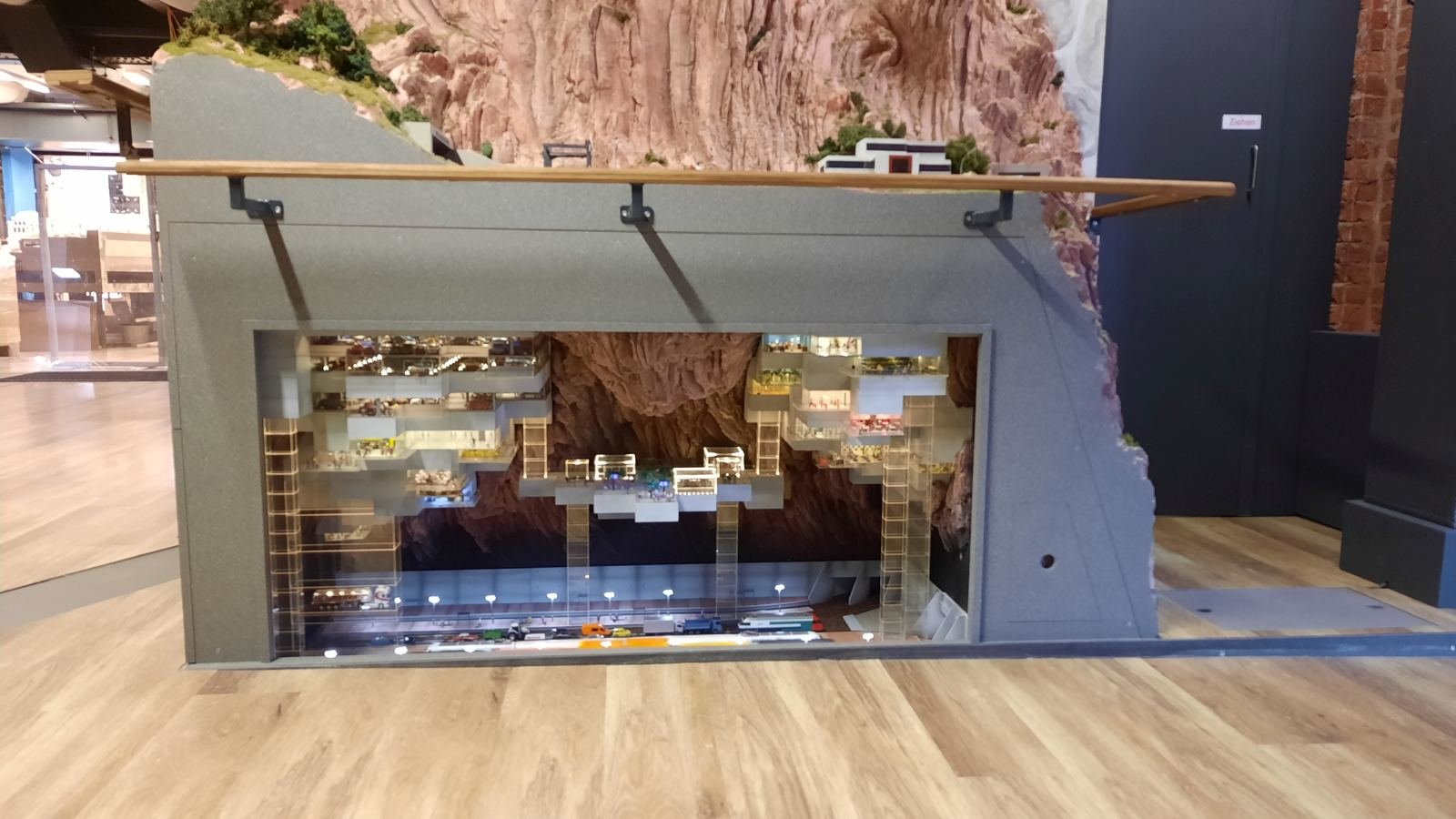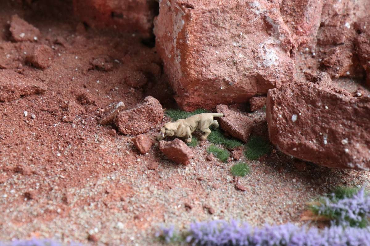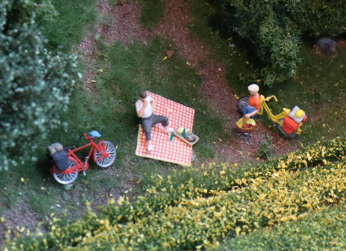 Man muss also ziemlich lange warten, bis man in den Genuss des Wechsels der Tageszeiten kommt, wird dafür aber mit einem höchst seltenen Anblick belohnt! Entlang der gesamten "Welt von oben" bereitet sich die Simulation einer Sonnenfinsternis aus, interessant ist auch die Perspektive aus der Sicht der Preiserlein. Leider ist diese Aufnahme nur mit schwierigsten Verrenkungen möglich gewesen, ich bin jetzt erstmal beim Physio.