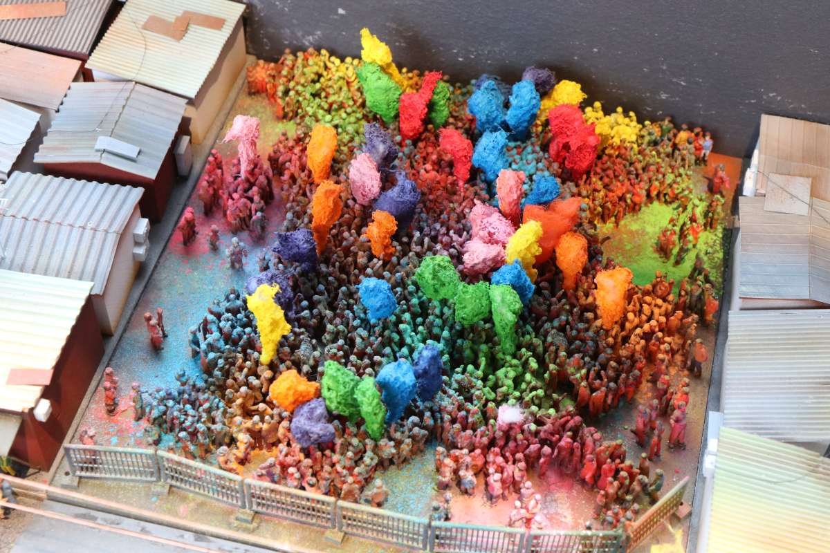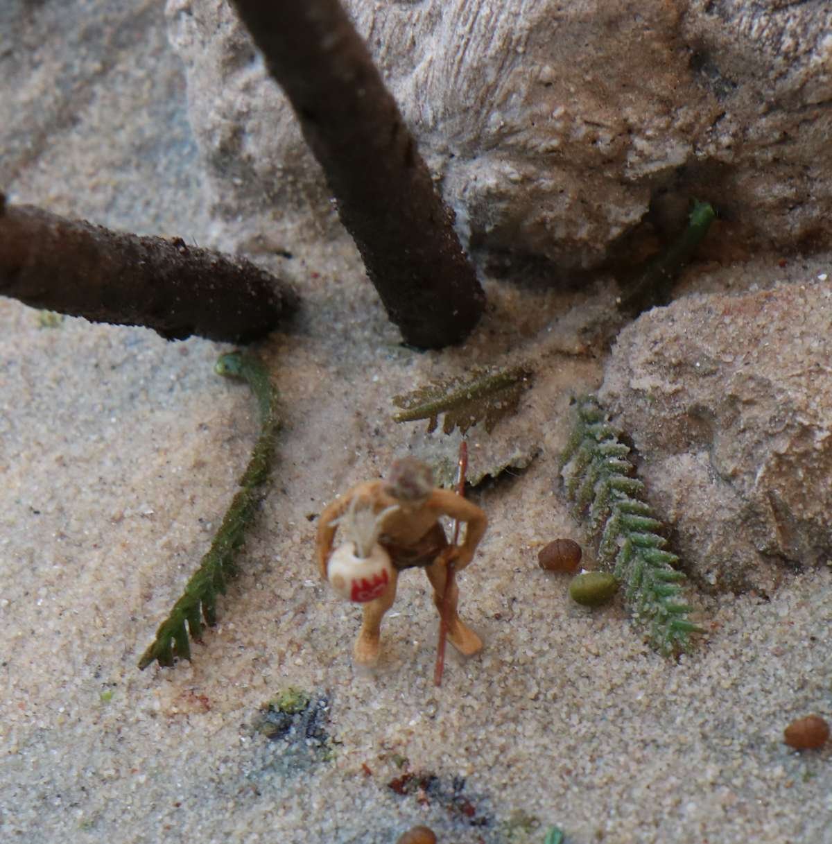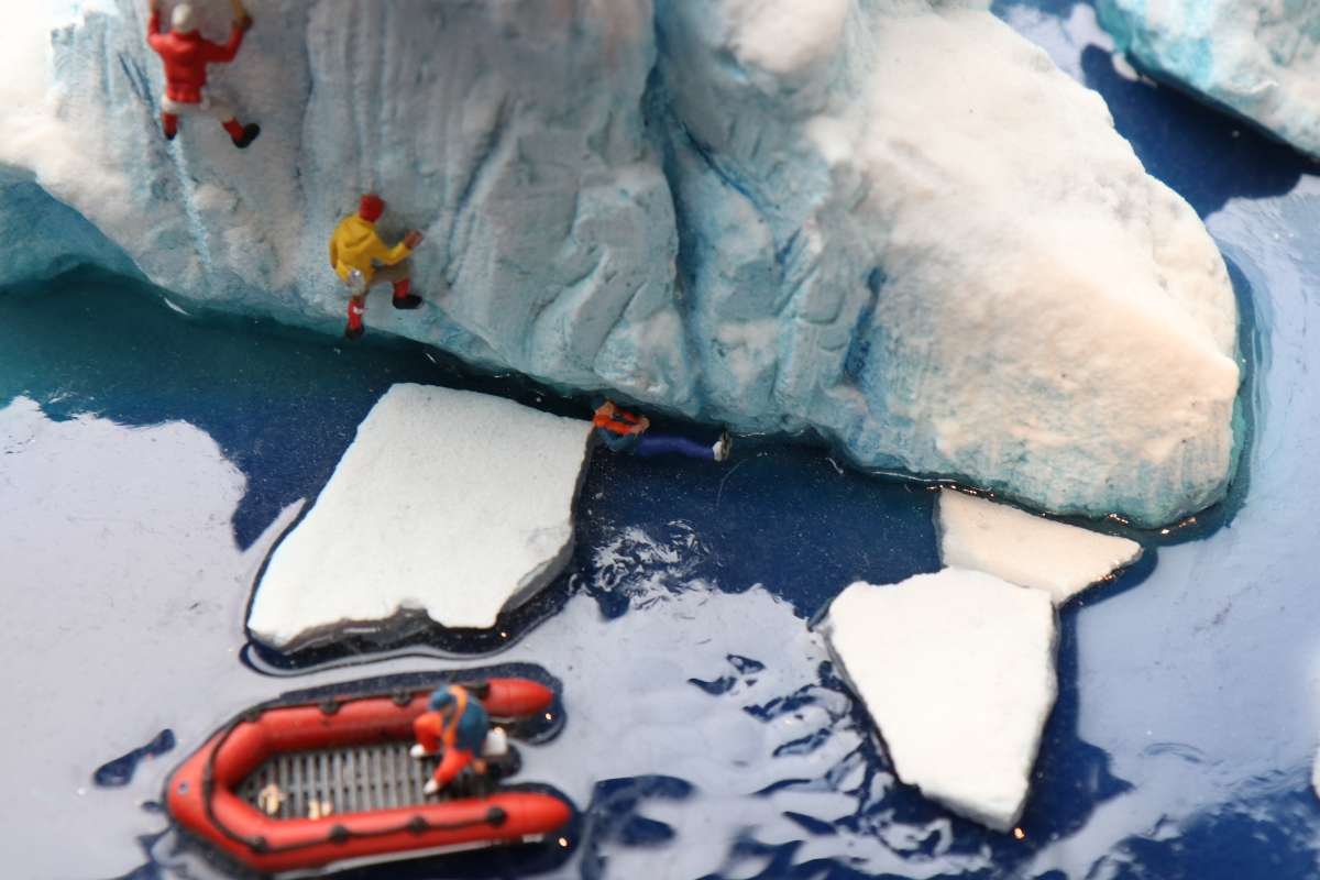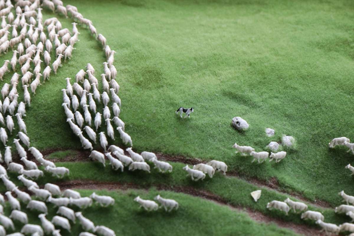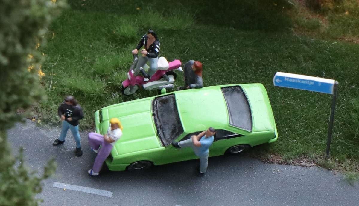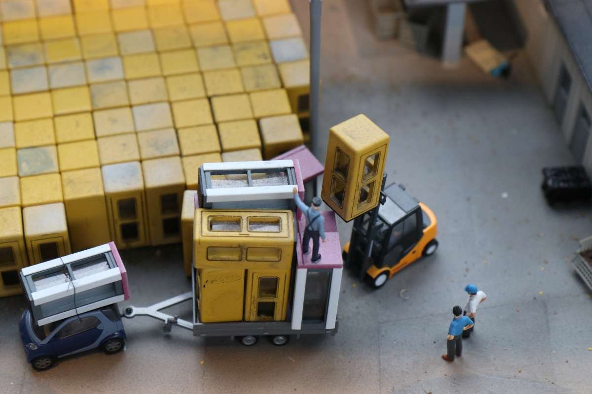 Man muss also ziemlich lange warten, bis man in den Genuss des Wechsels der Tageszeiten kommt, wird dafür aber mit einem höchst seltenen Anblick belohnt! Entlang der gesamten "Welt von oben" bereitet sich die Simulation einer Sonnenfinsternis aus, interessant ist auch die Perspektive aus der Sicht der Preiserlein. Leider ist diese Aufnahme nur mit schwierigsten Verrenkungen möglich gewesen, ich bin jetzt erstmal beim Physio.