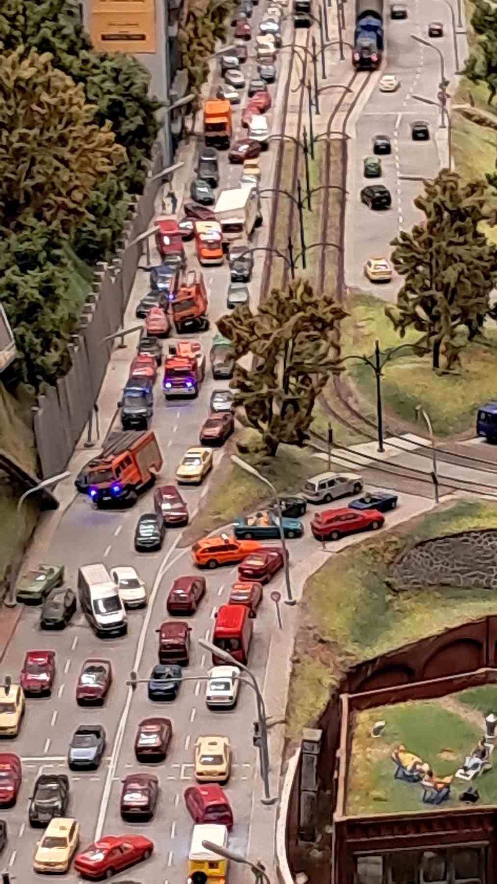 Zuletzt ein Eindruck von der Feuerwehr, die scheinbar an mehreren Fahrzeugen vorne rechts Reifenplatzer hatte, denn die Fahrzeuge sind bedenklich geneigt.