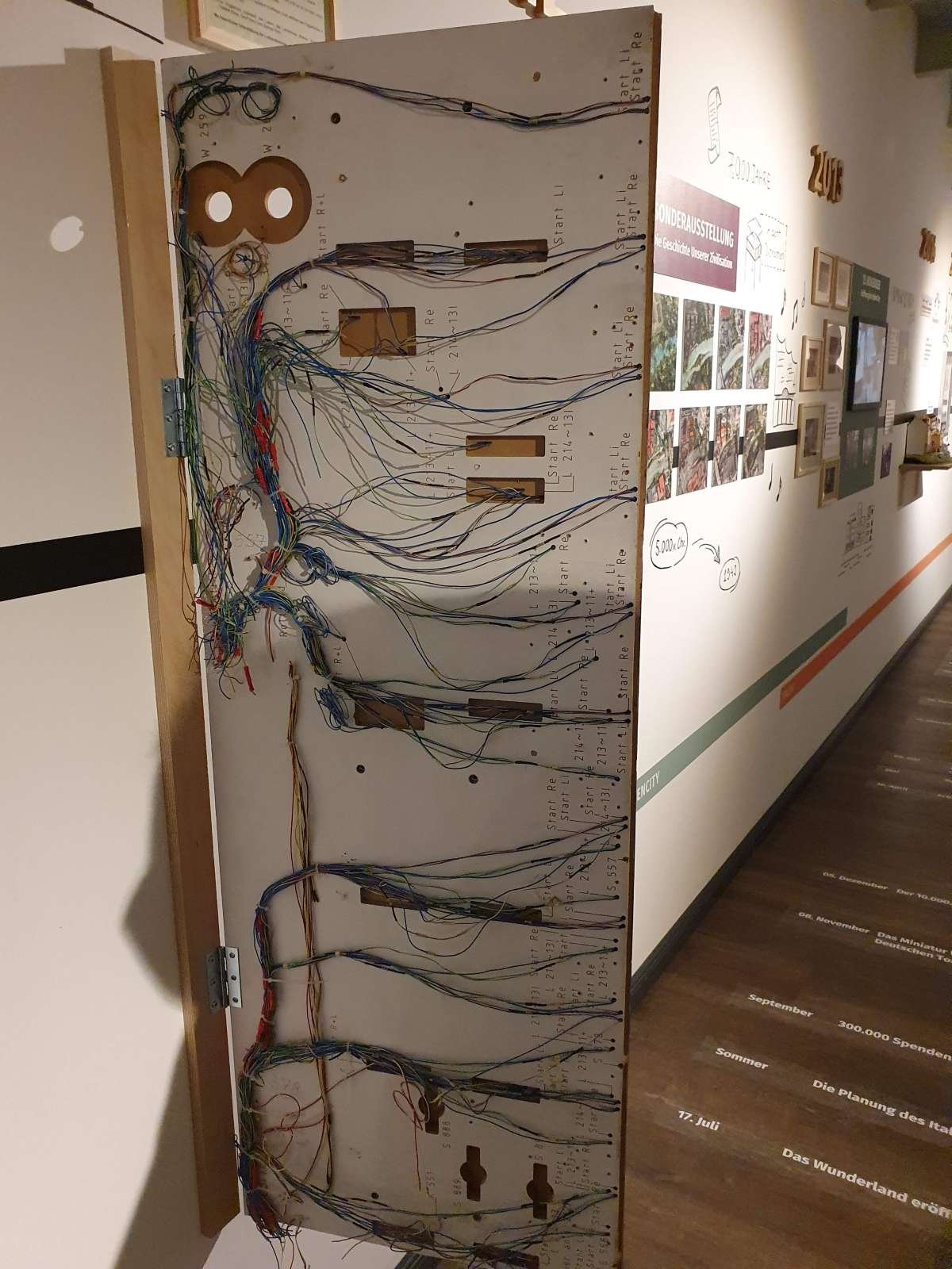 Wunderbar! Die alte ausgediente Platte der Landebahn ist an Scharnieren beweglich klappbar befestigt, so dass man sowohl oben drauf als auch unten drunter schauen kann - unbeschreiblich! Die Anschlüsse der vielen LEDs mit Vorwiderständen usw. nur allein für diese kleine Flughafenfläche ist einfach irre! Die anderen Teile der Ausstellung sind ebenfalls hochgradig sehenswert. Es lohnt sich allemal, die Treppe im Block L gegenüber Rio aufwärts zu steigen!