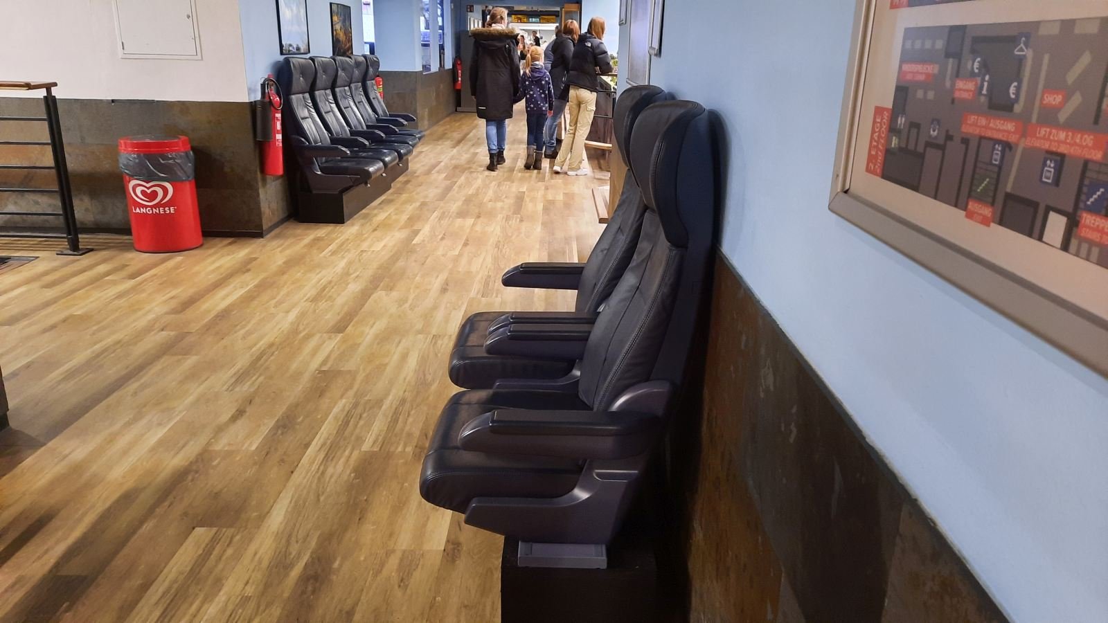 Die neuen Sitze in den Gängen sind wirklich praktisch, allerdings meistens besetzt (wofür sie ja da sind), und man muss über die Füße der Ruhenden steigen, was bei vollem Haus manchmal nicht ganz einfach ist: