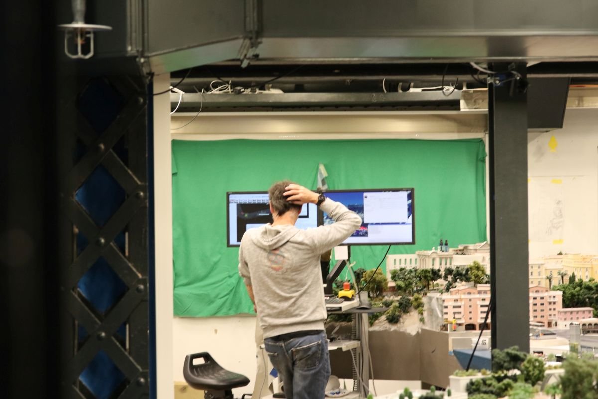 Und nicht zuletzt wurden einige Runden Probefahrten auf der Formel 1 Strecke gefahren. Die Autos scheinen bereits sehr ausgereift zu fahren, und daher wurde sehr intensiv an der TV-Übertragung gearbeitet - inklusive großem Deckenmonitor mit der Einblendung "Ja - es ist live!". Auch dies scheint schon recht ausgereift, und es macht Spaß, die Trainingsrunden über den Bildschirm zu verfolgen: