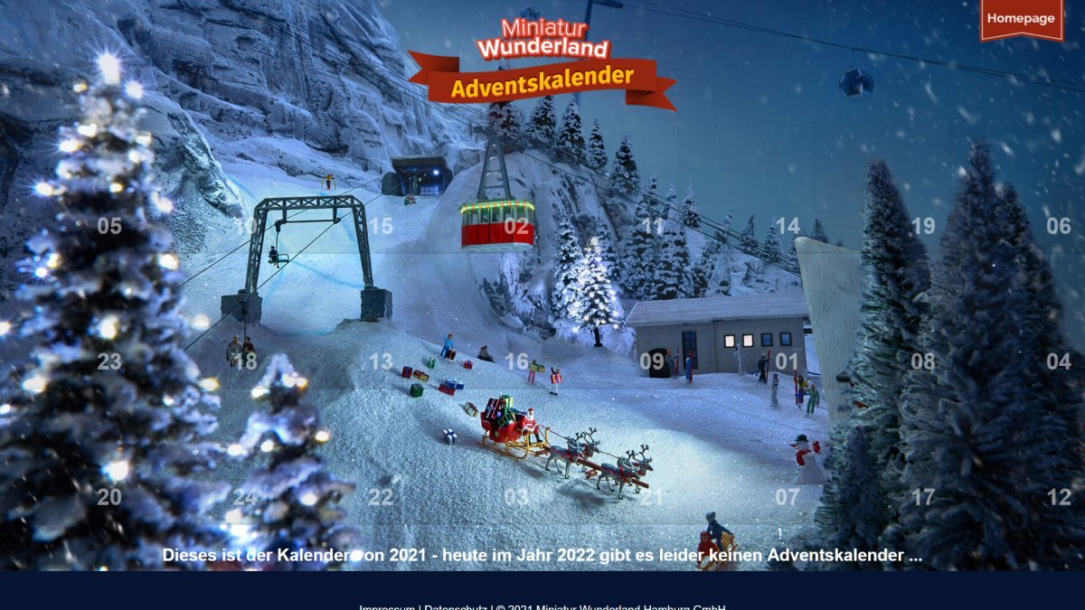 Hmm, also die Unterseite https://adventskalender.miniatur-wunderland.de/ führt über ein seit einiger Zeit ungültiges Zertifikat (ungültig seit Tue, 09 May 2023 13:15:42 GMT) auf folgende Seite: