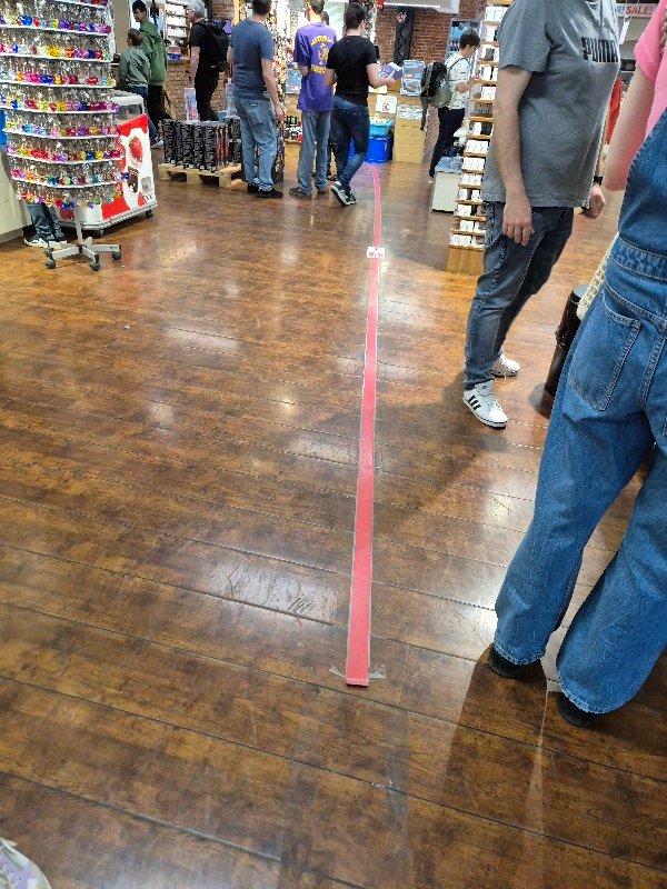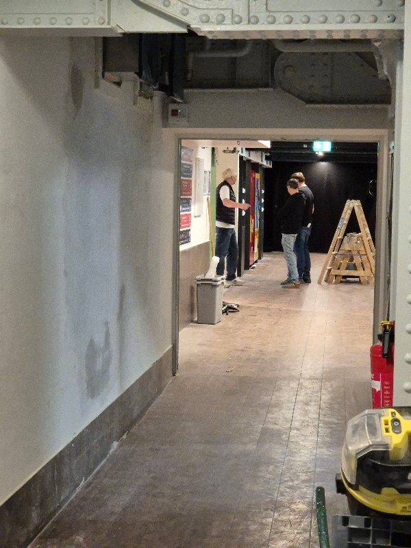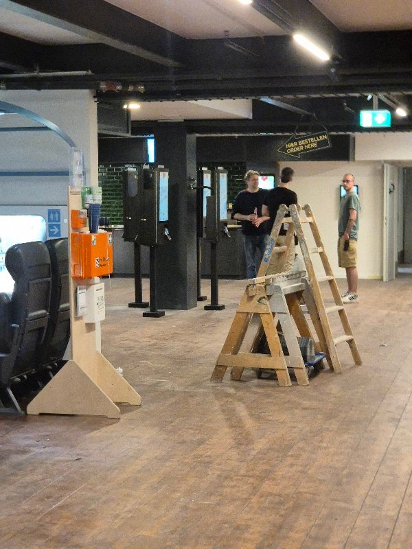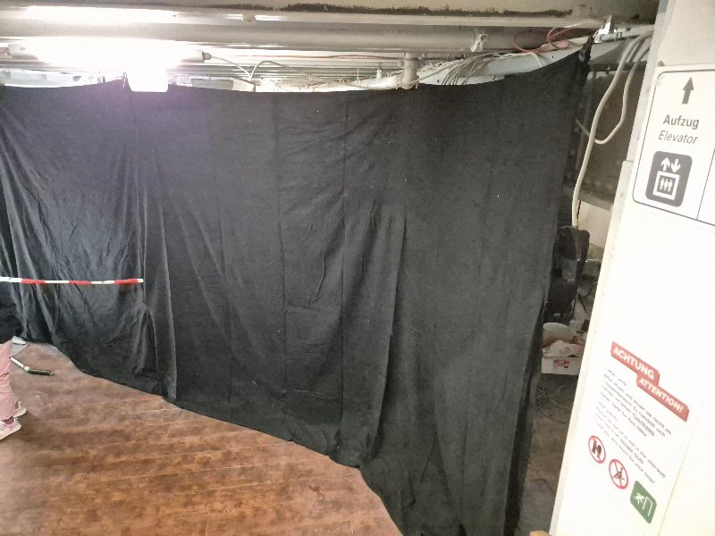 Die Trockenbauwand wurde bereits durch einen Vorhang ersetzt. Gegen Mittag wurde die Leitlinie zum Not-Bistro entfernt.