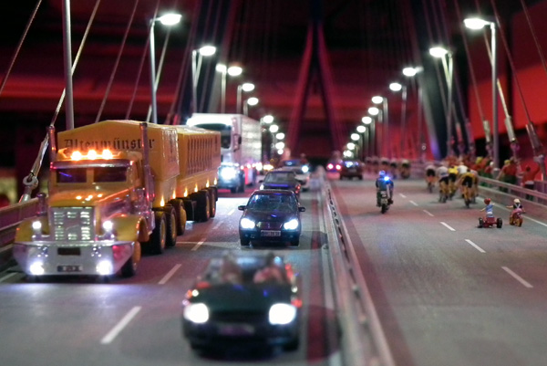 hallo ralf ,in der brückenfahrbahn habe ich kleine steckdosen eingebaut , somit können wir die fahrzeuge wechseln , die idee hatte ich schon 2001 mit der köhlbrandbrücke , dort sind 9 steckdosen installiert , leider konnte ich meine idee nicht verwirklichen , gruß gaston