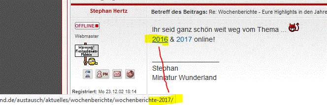 Re: Wochenberichte - Eure Highlights in den Jahren?